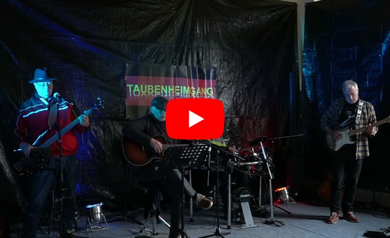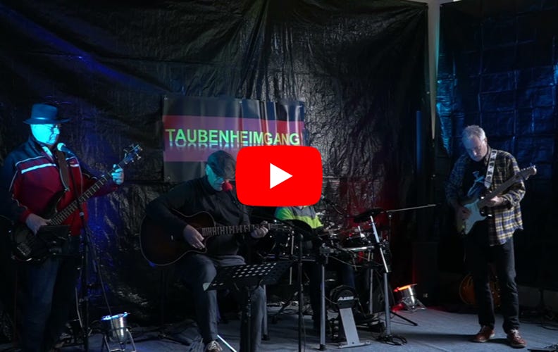Die Taubenheimgang hat ein Programm von gut 3 Stunden reiner Spielzeit am Start. Es umfasst allseits bekannte englischsprachigen Rock- und Folk-Klassiker ebenso wie Deutschrock. Auch Lieder von DDR-Bands haben wir im Programm. Hören und sehen kann man uns auf unserem Youtube-Kanal:
